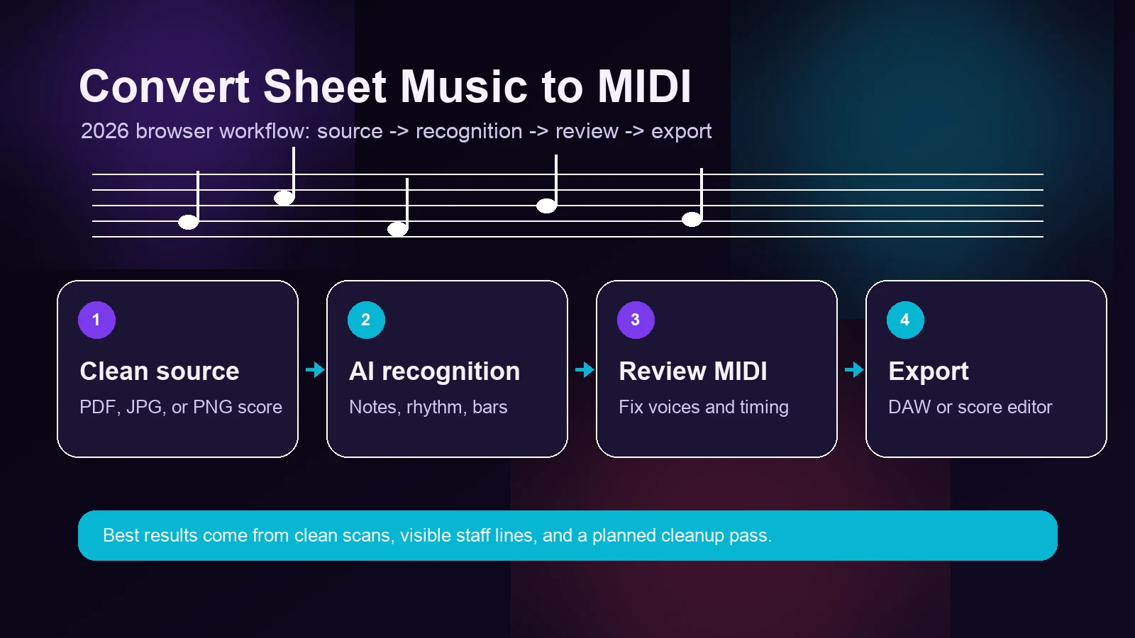 April 5, 20264 minArticolo in evidenzaCome convertire spartiti in MIDI online nel 2026MIDISpartitiOMRLeggi l'articolo→